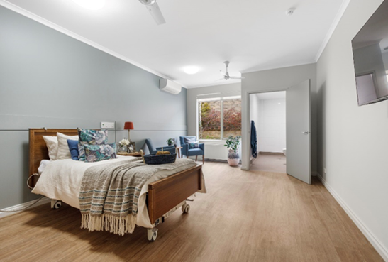 24/7 nurse call system with call points in bedroom and bathroom, so you have the comfort of knowing staff are available when you need them